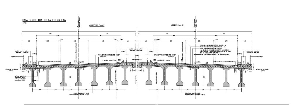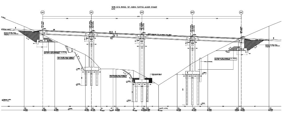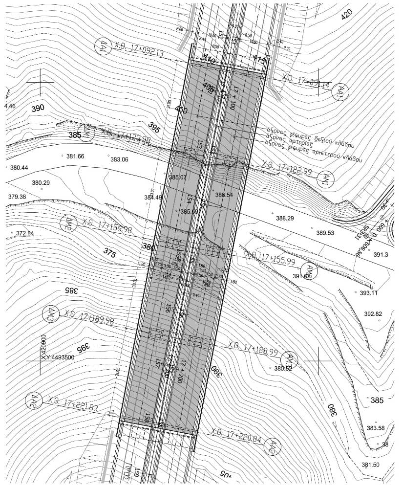 ΠΡΟΚΑΤΑΡΚΤΙΚΗ ΚΑΙ ΟΡΙΣΤΙΚΗ ΜΕΛΕΤΗ ΓΕΦΥΡΑΣ [Γ3] στη Χ.Θ. 17+155 του τμήματος 59.4.3 (Α/Κ Χορτιάτη-Α/Κ Ραιδεστού) του Εξωτερικού Οδικού Δακτυλίου Θεσσαλονίκης. Γέφυρα τεσσάρων (4) ανοιγμάτων συνολικού μήκους Lw=31,85+33,00+33,00+31,85= 129,70m δύο κλάδων με πλάτος εκάστου κλάδου 14,10μ. Ανωδομή με προκατα-σκευασμένες δοκούς προεντεταμένου σκυροδέματος, πρόπλακες και χυτή πλάκα συνεχή (μέσω πλακών συνέχειας) πάνω από τα μεσόβαθρα. Οι δοκοί εδράζονται επί ελαστομεταλλικών εφεδράνων στα βάθρα. Θεμελίωση με έγχυτους φρεατοπάσσαλους.