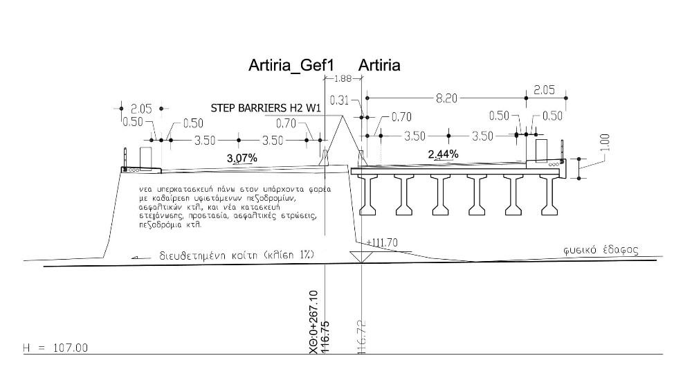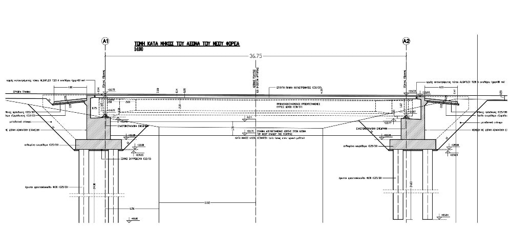 Γέφυρες <Τ1> Lw= 36,75m και <Τ10> Lw=30,40m