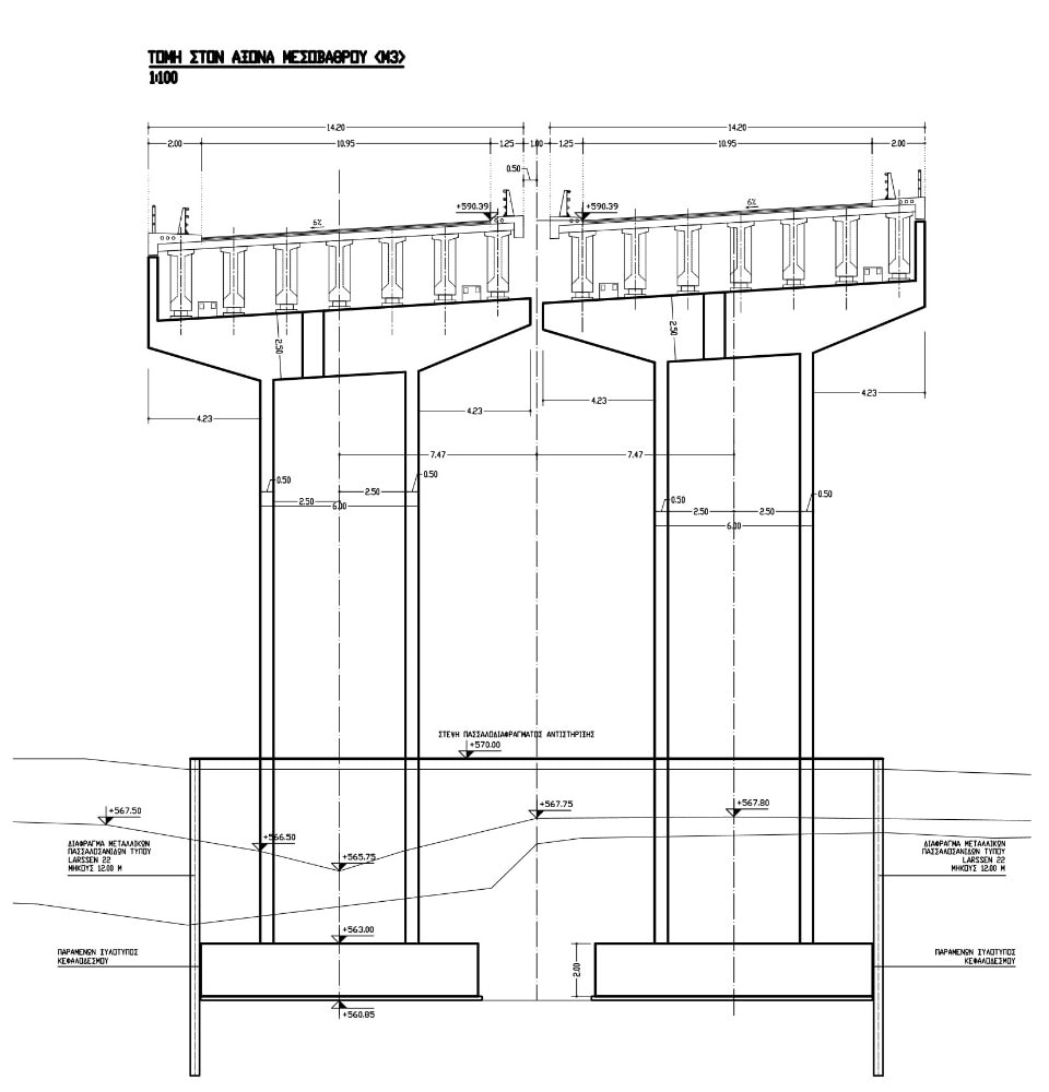 Προκαταρκτικές, Προμελέτες και Οριστικές μελέτες 36 τεχνικών έργων (2 κοιλαδο-γεφυρών ανοιγμάτων 500 και 300 μ., 4 άνω διαβάσεων, μιάς γέφυρας και 29 κάτω διαβάσεων) του νέου Αυτοκινητόδρομου Ιωάννινα – Κακαβιά (επέκταση της Ιόνιας Οδού). Εκπονήθηκαν και εγκρίθηκαν Προκαταρκτικές , Προμελέτες και Οριστικές μελέτες τεχνικών έργων . Ποσοστό συμμετοχής 50%.