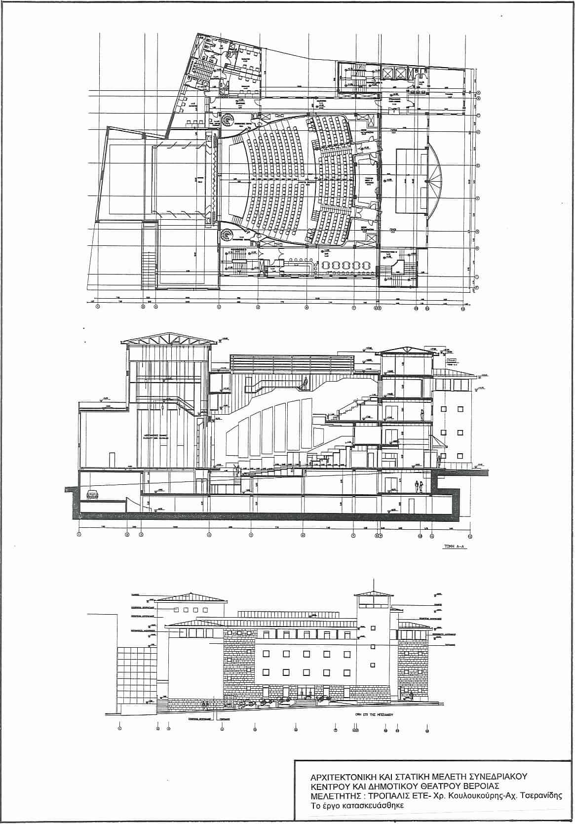 Εκπονήθηκε τον Μάρτιο 1997 Οριστική Αρχιτεκτονική και Στατική μελέτη Συνεδριακού Κέντρου – Θεάτρου Δήμου Βέροιας για τη συμμετοχή σε διαγωνισμό με το σύστημα “μελέτη-κατασκευή”. Κατέλαβε την 1η θέση κατά την αξιολόγηση των τεχνικών προσφορών Το έργο ανελήφθη, εκπονήθηκαν μελέτες εφαρμογής και κατασκευάσθηκε. Εγκαινιάσθηκε τον Οκτώβριο 1999. Περιλαμβάνει συγκρότημα θεάτρου, γραφειακών χώρων, βοηθητικές εγκαταστάσεις, διαμόρφωση περιβάλλοντος χώρου και υπόγειο χώρο στάθμευσης.